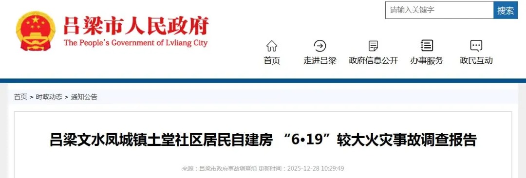 2025年6月19日21时51分许,文水县凤城镇土堂社区张某德自建房(以下简称“自建房”)发生较大火灾事故,造成3人死亡,过火面积约749.2㎡,直接经济损失431.36万元。