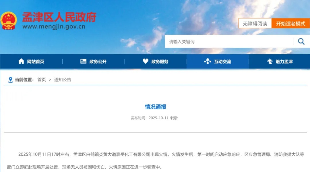 10月11日,河南省洛阳市孟津区人民政府发布通报,11日17时左右,孟津区白鹤镇炎黄大道宸岳化工有限公司出现火情,现场无人员被困和伤亡。有消息称,经初步调查,该公司硅油生产车间用于收集二甲基硅氧烷混合环体的塑料吨桶泄漏,操作工在倒料过程中遇静电起火,具体原因正在进一步调查。ehs.cn