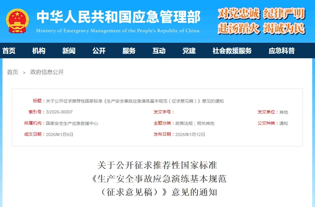 根据国家标准制修订工作安排,国家安全生产应急救援中心组织起草了推荐性国家标准《生产安全事故应急演练基本规范(征求意见稿)》及编制说明(见附件1、2)。