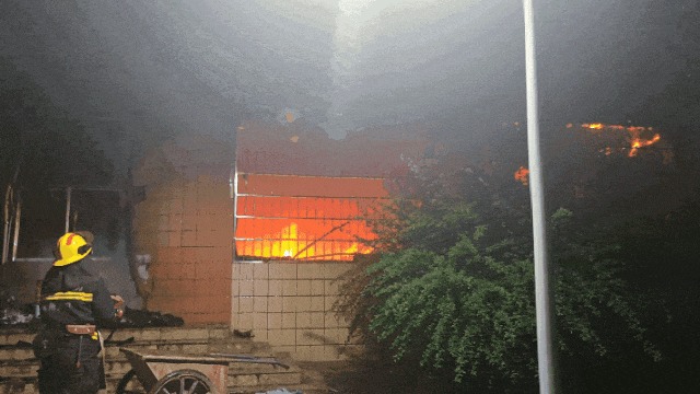 贵州省贵阳市一高职院校图书馆于午夜0时许突发火情,消防员接警后紧急赶赴现场到场时发现起火位置位于图书馆一楼大厅此时火势正处于发展阶段并持续向周边蔓延