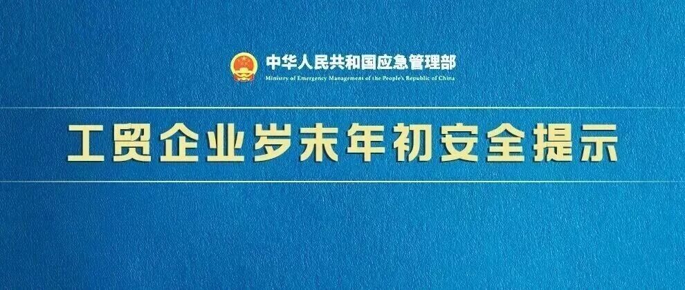 临近岁末年初,为推动工贸企业深刻吸取,近期国内外事故教训加强对低温冰冻天气检维修增多、生产负荷增加等,不利因素的安全管控应急管理部现向全国工贸企业发出如下安全提示