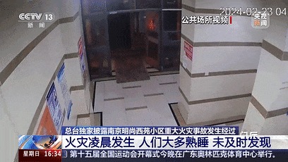 江苏南京明尚西苑小区6号楼 一楼架空层的电动车凌晨起火 火势通过天井烟囱效应迅速蔓延至高层 致15人死亡、44人受伤
