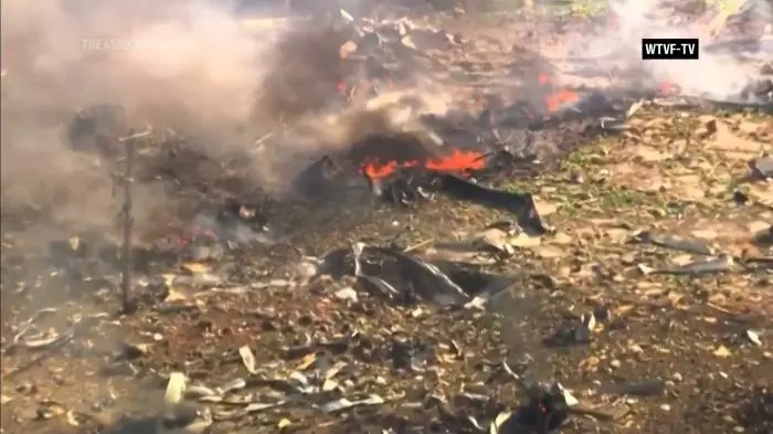 爆炸现场。图片来源:美联社视频报道截图
