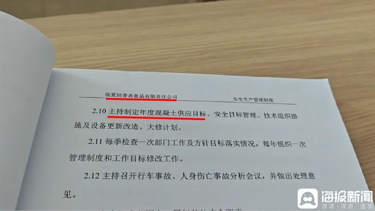 临夏回香斋食品有限责任公司安全生产管理制度出现“混凝土供应目标”